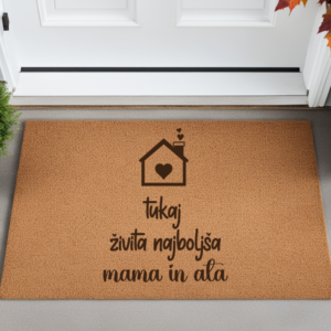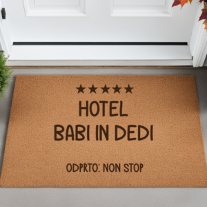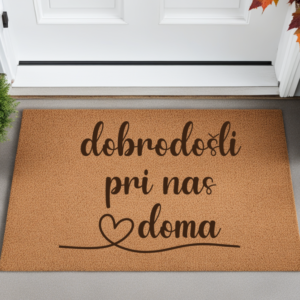 Napis na predpražniku je narejen z gravuro, zato priporočamo, da z njim ravnate nežno. Izogibajte se močenju in intenzivnemu drgnjenju graviranih površin, da boste ohranili lep videz in dolgo življenjsko dobo vašega predpražnika.