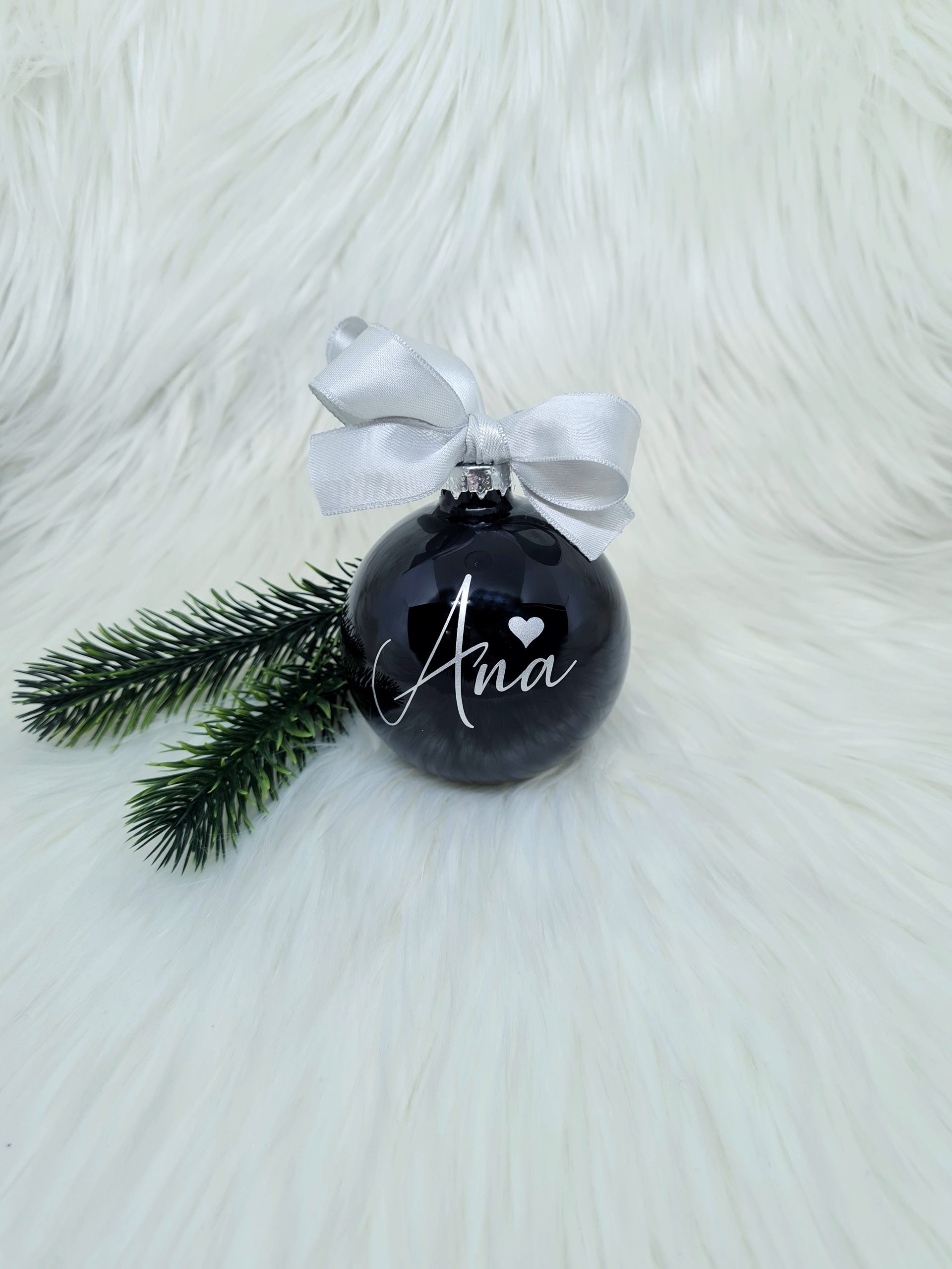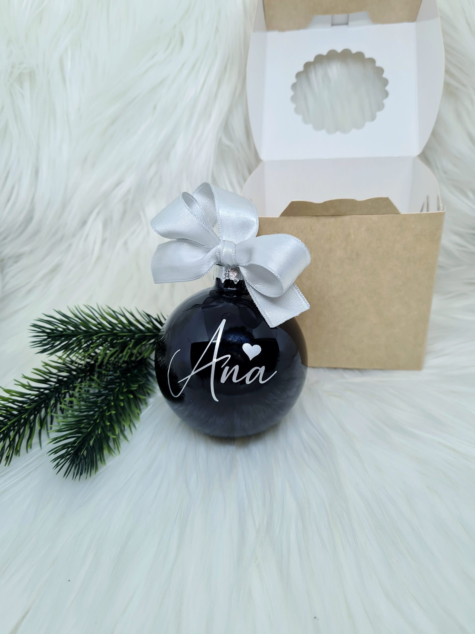 Personalizirana bunkica črna – okrasek za smrečico: Ime
