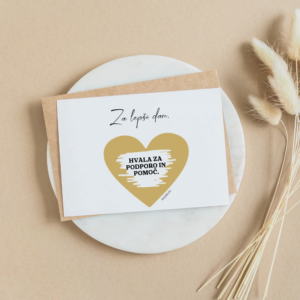 - kartico s personaliziranim napisom in srčkom (velikost kartice 10,5 x 15 cm)
